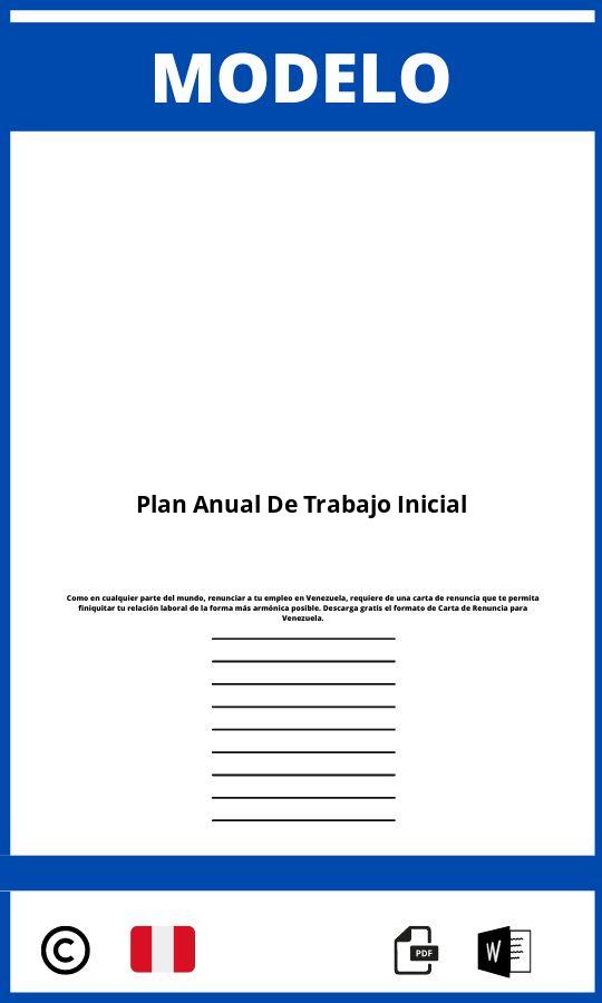 En esta pagina web esta disponible para descargar y abrir Modelo De Plan Anual De Trabajo Inicial en el formato PDF y WORD para completar y rellenar valido en Peru